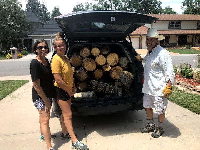 For the past couple of years, Bill has been cutting down trees in our backyard that have gone to that big forest in the sky. He dutifully chops up the wood and and adds it to our big pile. The problem is that we rarely light our fireplace because we live in AZ in the winter. So the wood just sits there, seasoning. I have talked about putting something on Next Door about free firewood, but I was too scared. Those people are MEAN.
