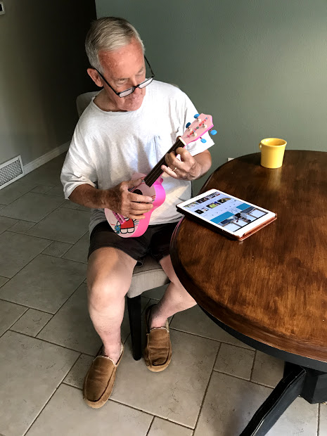 The toys I have for my grandkids are old, and and purchased mostly when they were babies. I haven’t bought a single toy (aside from Play Doh) for the kids in six years. The other day, Mylee and Cole and I went downstairs to look for something, and the kids got in the toy chest. They began rooting through the toys and came up with some treasures, including a Little Kitty baby guitar. Mylee began pretending she was playing guitar, and carried it upstairs. The next morning, it was still laying where she had put it — where Bill sits in the morning to have coffee. “Hmmm,” I heard him say. “I think I could tune this thing.” He pulled up some tuning program from the internet and began attempting to tune the 10-year-old Little Kitty guitar. He wasn’t very successful, but he made me laugh…..