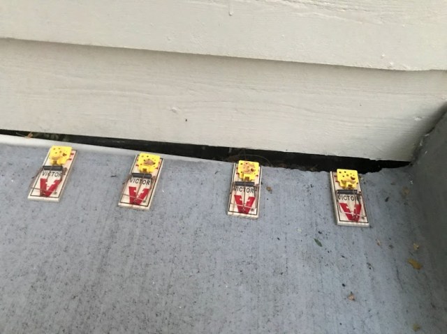 Last night while Bill and Bec and I sat outside watching the sun go down and drinking our limoncello, we also watched a mouse come out from underneath the house where there is a gap between the patio and the house to gather up the leftover crumbs from our fun dinner with Jessie and Rob. The mouse would come from under the house and begin sniffing around under the table. When one of us would move, the mouse would scramble. Well, I hope it/they are prepared for war, because Bill McLain is declaring GAME ON…..