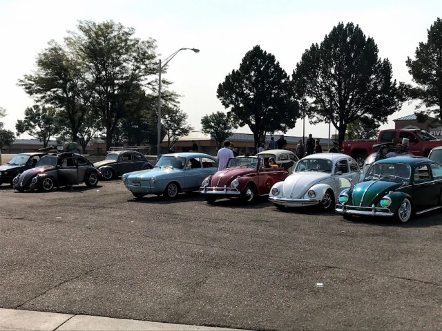 It was all I could do to keep from parking next to them, but I’m afraid my 2003 bug would have been a redheaded stepchild next to the classic beetles. I’m guessing they were going to caravan someplace for a picnic because I saw lots of picnic baskets. But I will tell you that they bought a lot of donuts as well, because Lamar’s showcase was pert near empty.