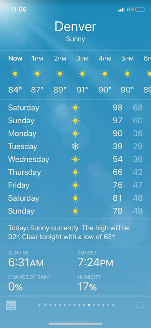 I assume it’s Monday going into Tuesday that’s throwing her off guard. Little does she know that a drastic temperature change such as that is pretty typical of Colorado autumn. Colorado spring, for that matter.