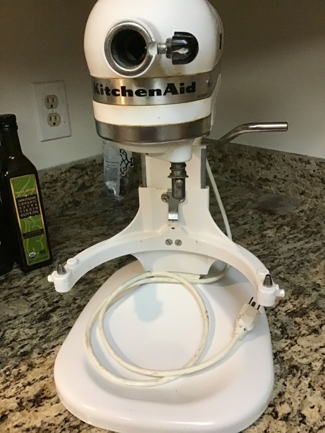 Kitchenaid stand mixers are supposedly built to last forever. I know people who inherited them from their grandmothers. When a part breaks, you buy a new part and repair it. But as I began thinking about figuring out the part, trying to find a place that repairs mixers, carrying the extremely heavy and unwieldy mixer to the car and then to the repair shop and then back to the car and then into my home a month or so later, I made a quick decision. I ordered a new Kitchenaid stand mixer. Mine was dirty anyway. (Oh, just kidding. Well, not about it being dirty, but about getting rid of it for being dirty.) Farewell my friend. You were a hard-working companion…..