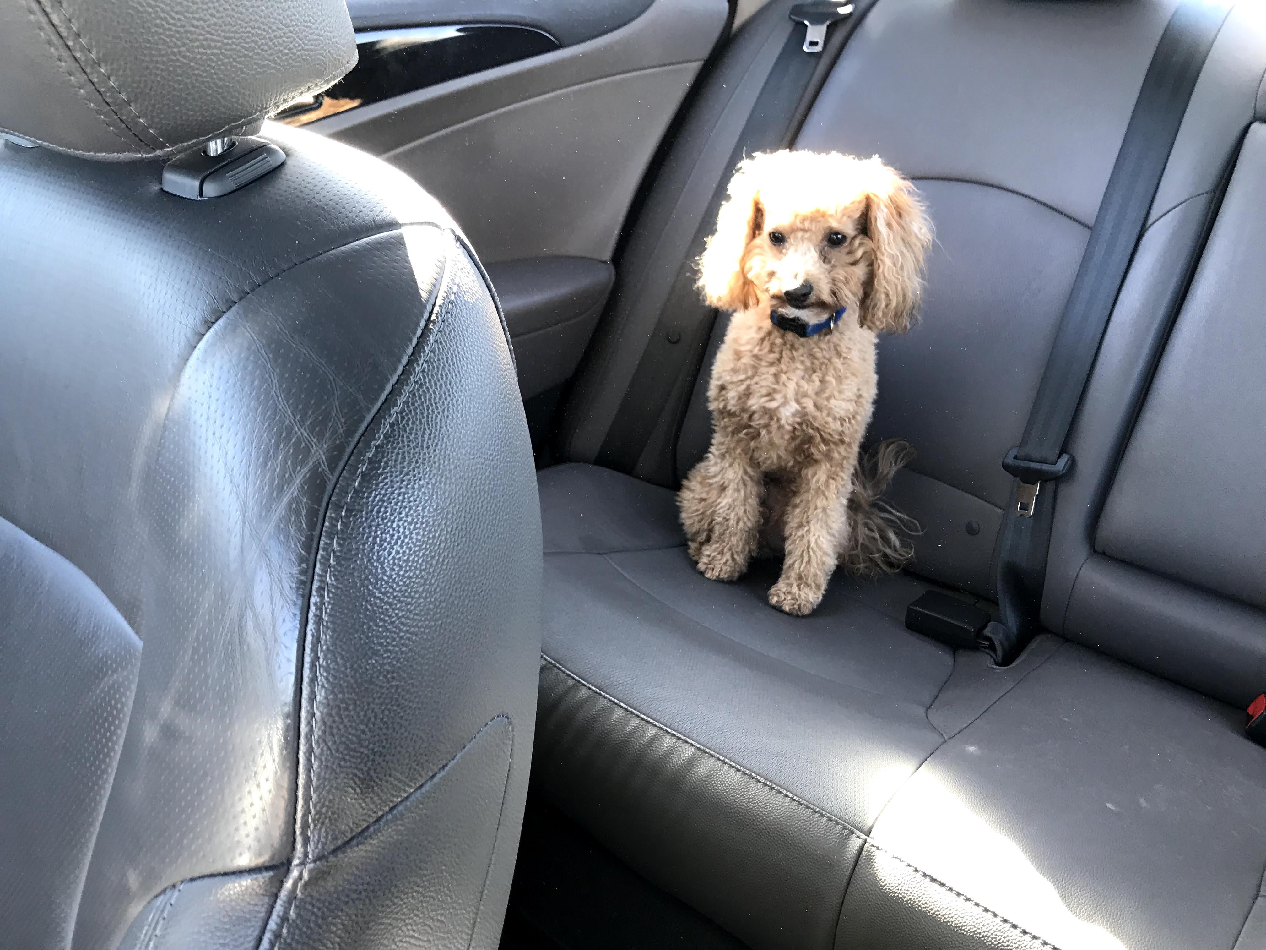 Yesterday my sister Jen ran into the grocery store to pick up some ice cream to treat her granddaughter Lilly during their “girls’ night” sleepover. Her pooch Winston was with us, and he and I stayed in the car. He was upset when she left him behind as she ran into the door. He cried for a bit, and then decided to be patient and wait for her. When I turned around, he looked so adorable as he waited that it made me laugh…..