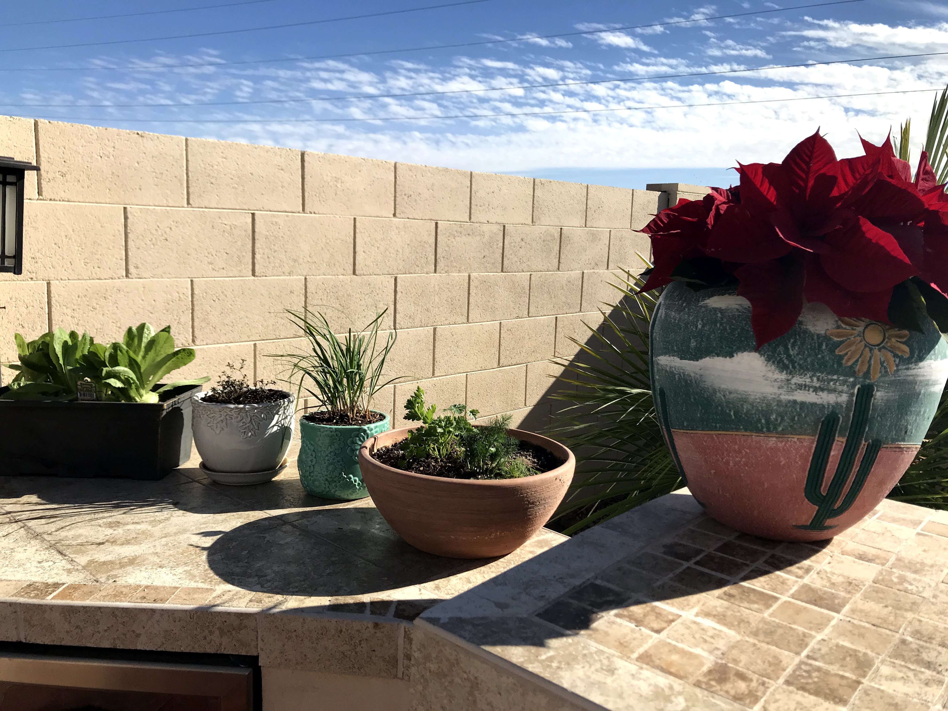 I still have my poinsettia as well as my herbs. All sitting on our outdoor bar where we can enjoy our afternoon cocktails.