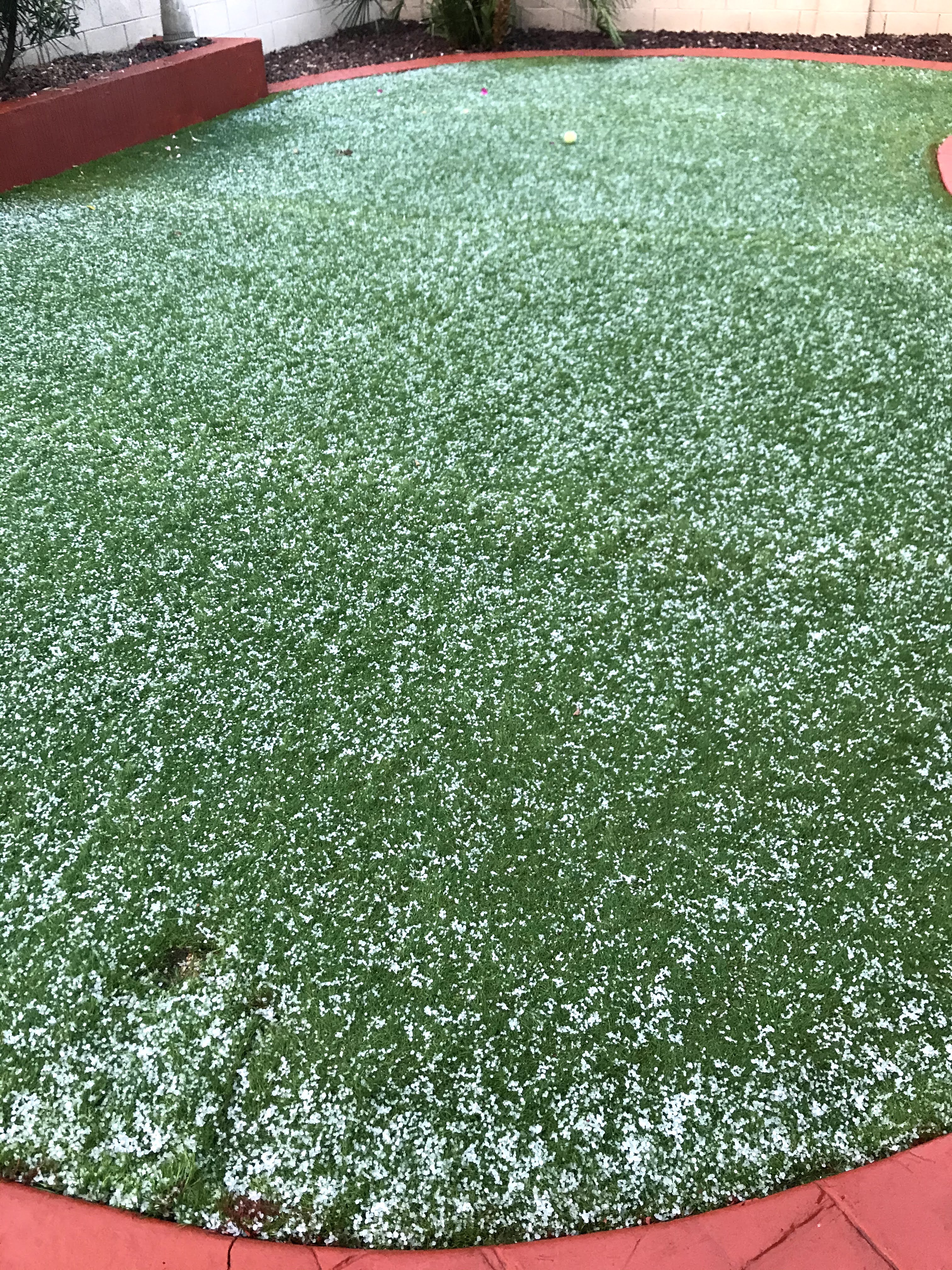 At one point Sunday, it hailed. Not Colorado hail that could (and does) damage cars and roofs. Little pearls of hail. But that was the first time I had seen hail in AZ…..