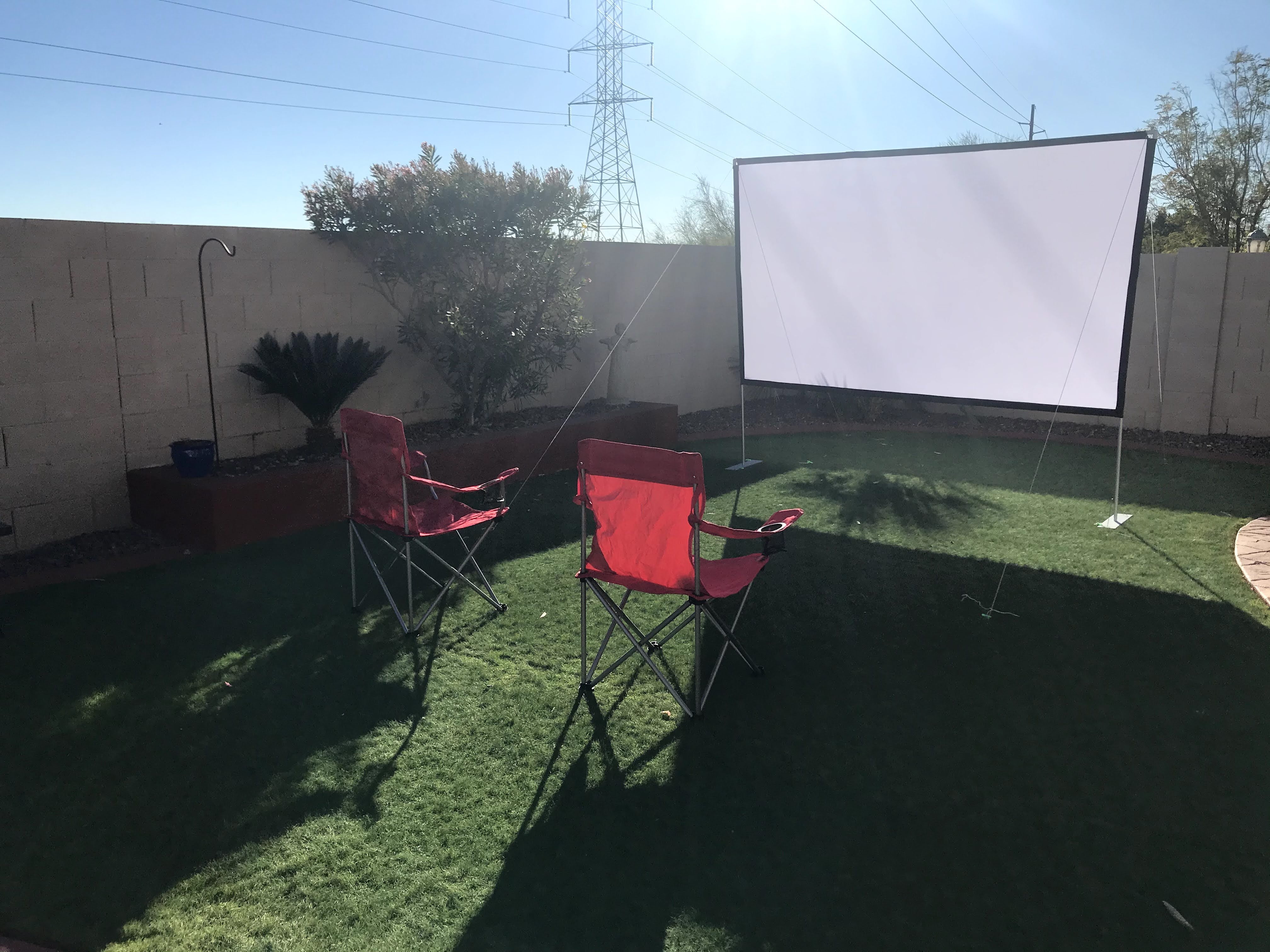 Well, that last statement is true. They would love it. The problem is that our closest grandkids are 900 miles away in Denver, and the other two are 2,600 miles away in Montpelier, VT. Nevertheless, we now own a projector and (because we needed something onto which we could project) a screen that puts most drive-in theaters to shame. Again, anyone that knows my husband is not surprised that he went with the large size. It’s how he rolls…..