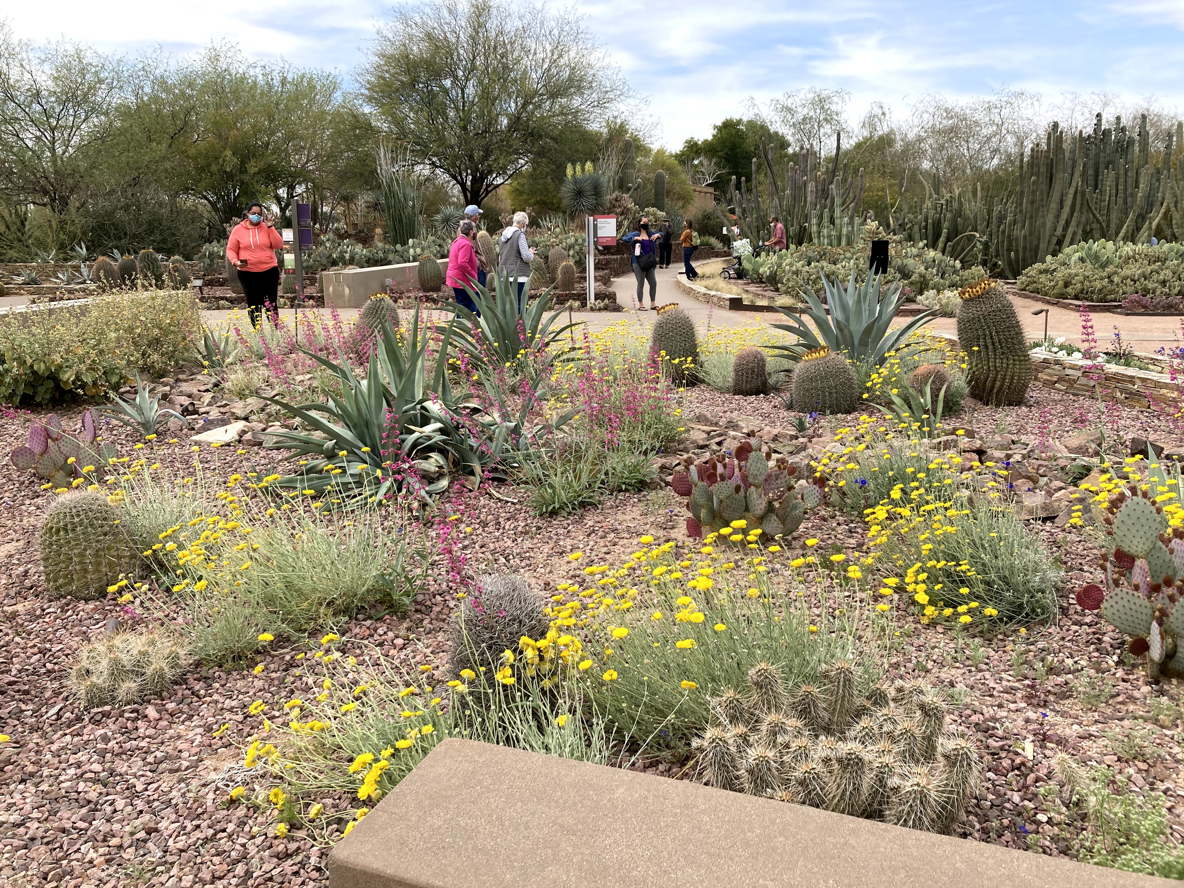 Thursday Bec and I went to the Desert Botanical Garden to walk around and see the cactus bloom. Bec is a docent at the Botanical Garden, but of course the volunteers have not been able to lead tours for the past year. As things are getting back to normal, she invited me to spend a few hours with her looking at the bursts of color……