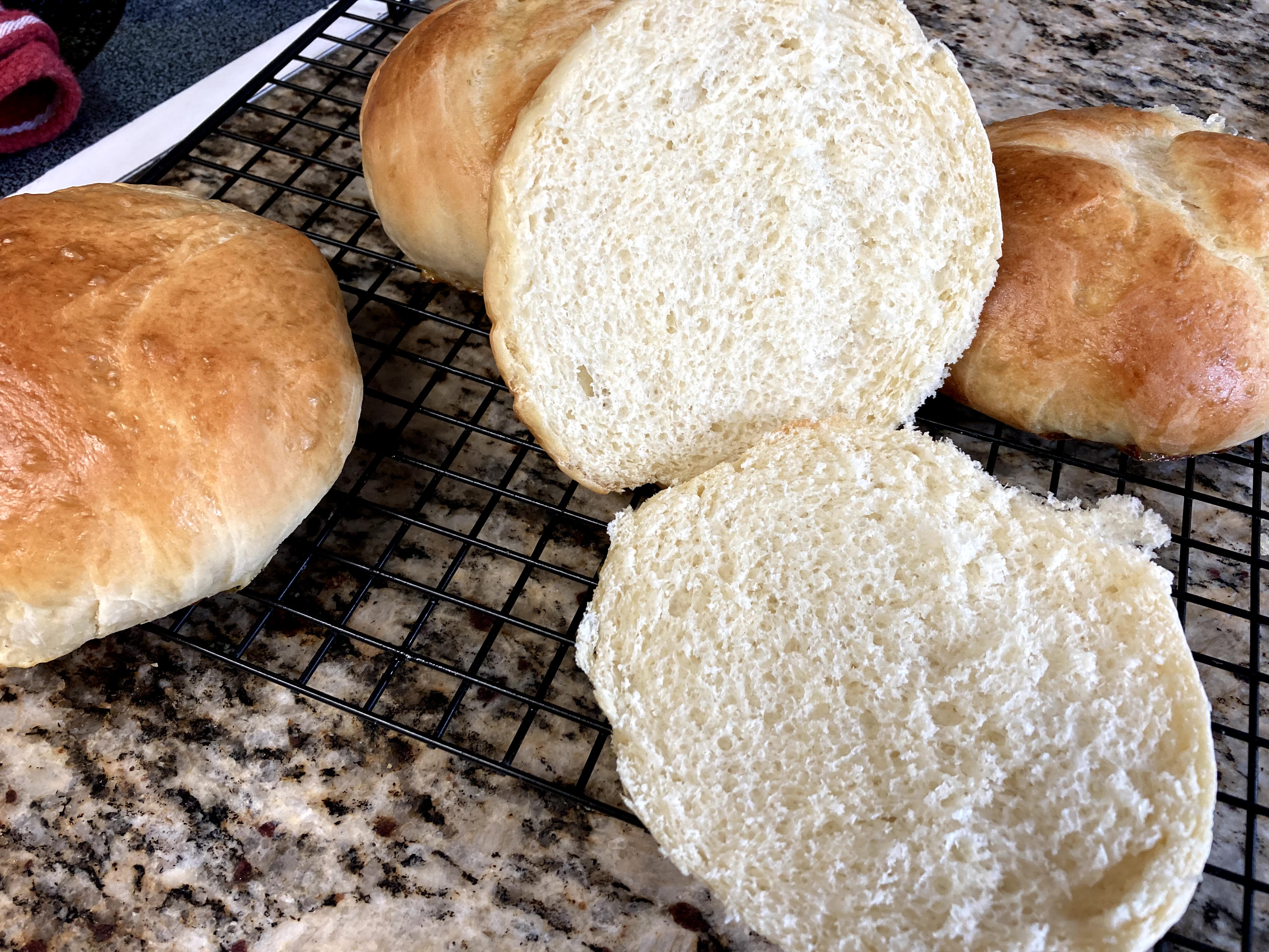 I set out yesterday with a new recipe. This recipe came from Pinterest. Despite an inordinate time they spend on giving me survival tips, they also have figured out two things: I like to bake bread and I like to cook meals designed for two people. Hence, they offered me a recipe for small-batch hamburger buns. Four hamburger buns. Easy-peasy. Soft and delicious.