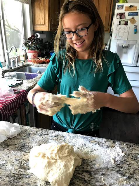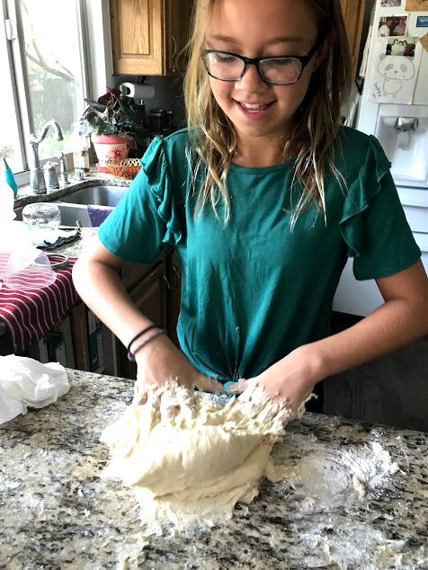 We mixed the yeast and the water and the eggs and the flour, and Dagny took over. “It’s just like mixing slime!” she proclaimed with delight…..
