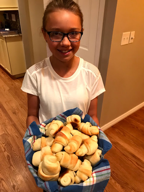 A chilly house was not a problem yesterday as Dagny and I began our roll-making process. She proclaimed that she had watched her Aunt Lauren make these rolls many times, and she knew exactly what to do. And she was quite right.
