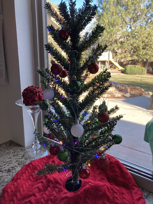 I spent the remainder of the day cleaning and preparing the house for guests. I will admit that I also did a bit of Christmas decorating, including putting up a teeny-tiny tree in my kitchen…..
