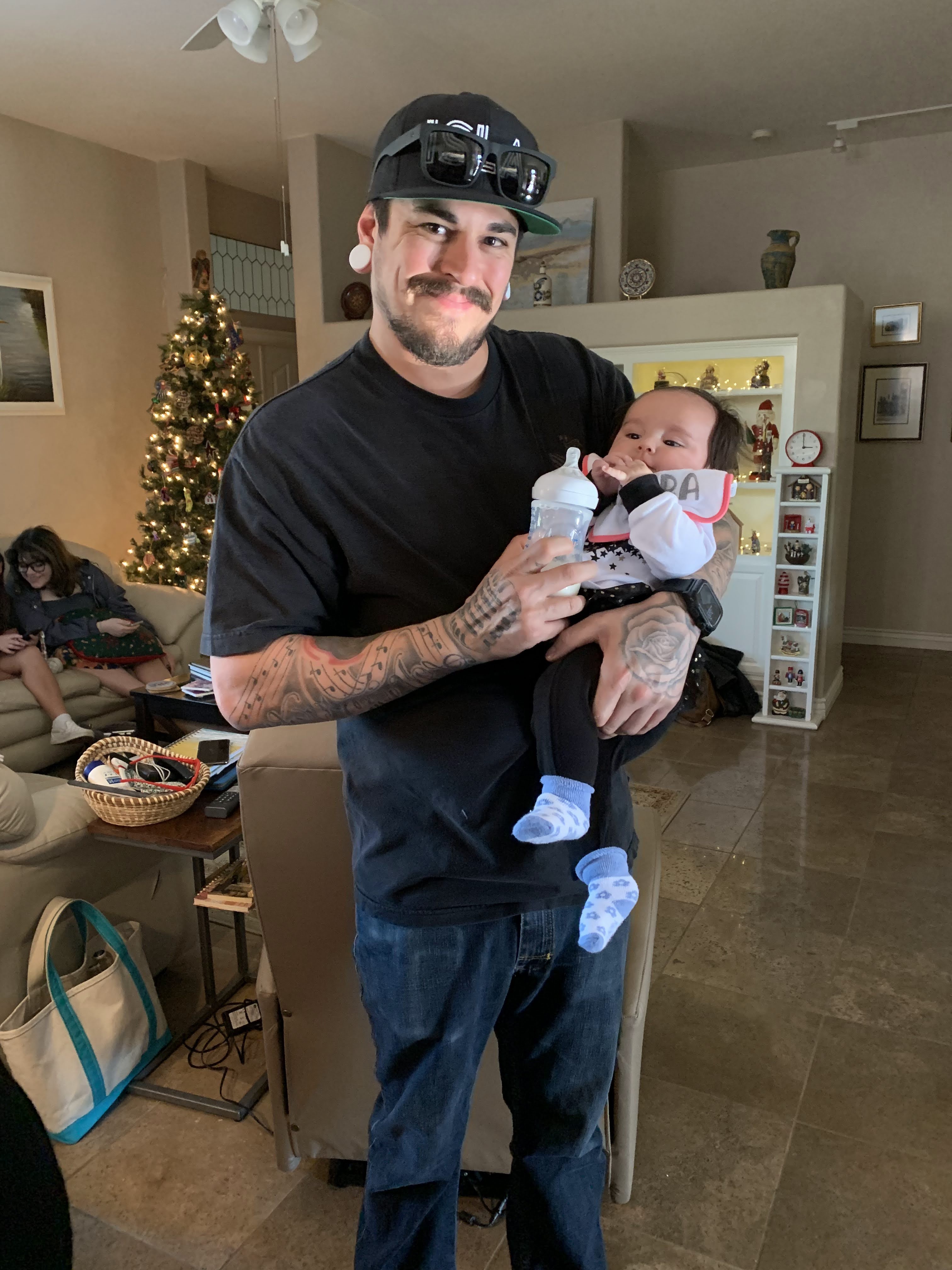 Our newest family member — Zoe — was one of the party-goers at my sister Bec’s house on New Year’s Day. Though her daddy Joey has covered her shirt with a bib while giving her a bottle, rest assured she was dressed for the occasion with her New Year’s top and fashionable leggings.