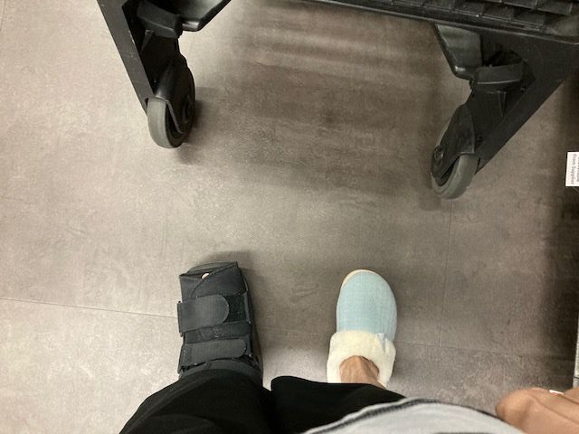 I wore a cast for four weeks. I’m going on my third week of wearing a boot that replaced the cast, a boot that probably weighs three pounds (25 pounds when I’m tired). My left foot hasn’t born any weight for weeks. I’ve only taken two showers in the past month-and-a-half, and though the doctor gave me permission, he wasn’t happy about it. He is worried about infection. Six weeks of sponge baths. I haven’t been able to wear a normal pair of pants the entire time. I’m living in a pair of wide-legged yoga pants, not because I’m doing yoga, but because they are the only thing I can get over the boot.