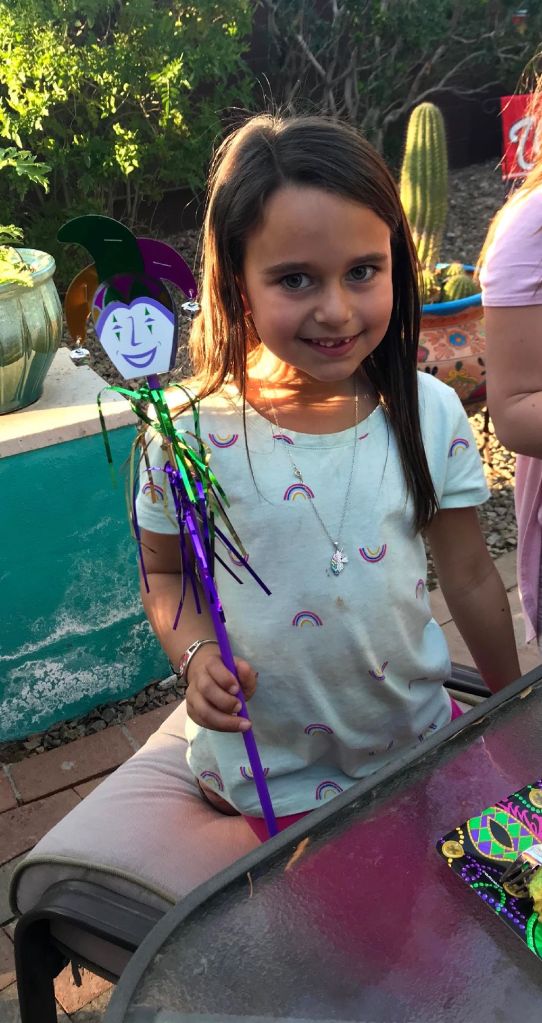 Fast forward to 2022. Bec’s party is this afternoon. Our niece Kacy confided to Bec that Lexie — now 9 – was very nervous because she didn’t have the King Cake she believed she was obligated to bring. Kacy confided Lexie’s concerns to Bec, who assured her that Lexie didn’t need to bring a cake. I’m certain Lexie was very relieved and could go back to worrying about Tic Toc videos….