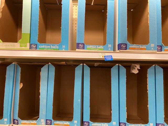 I am always surprised at what things are not available at the grocery store these days. My most recent shopping trip didn’t disappoint. There were no bouillon cubes to be had. Spaghetti still seems to be tough to attain. Finally, I continue to have trouble finding cotton balls…..