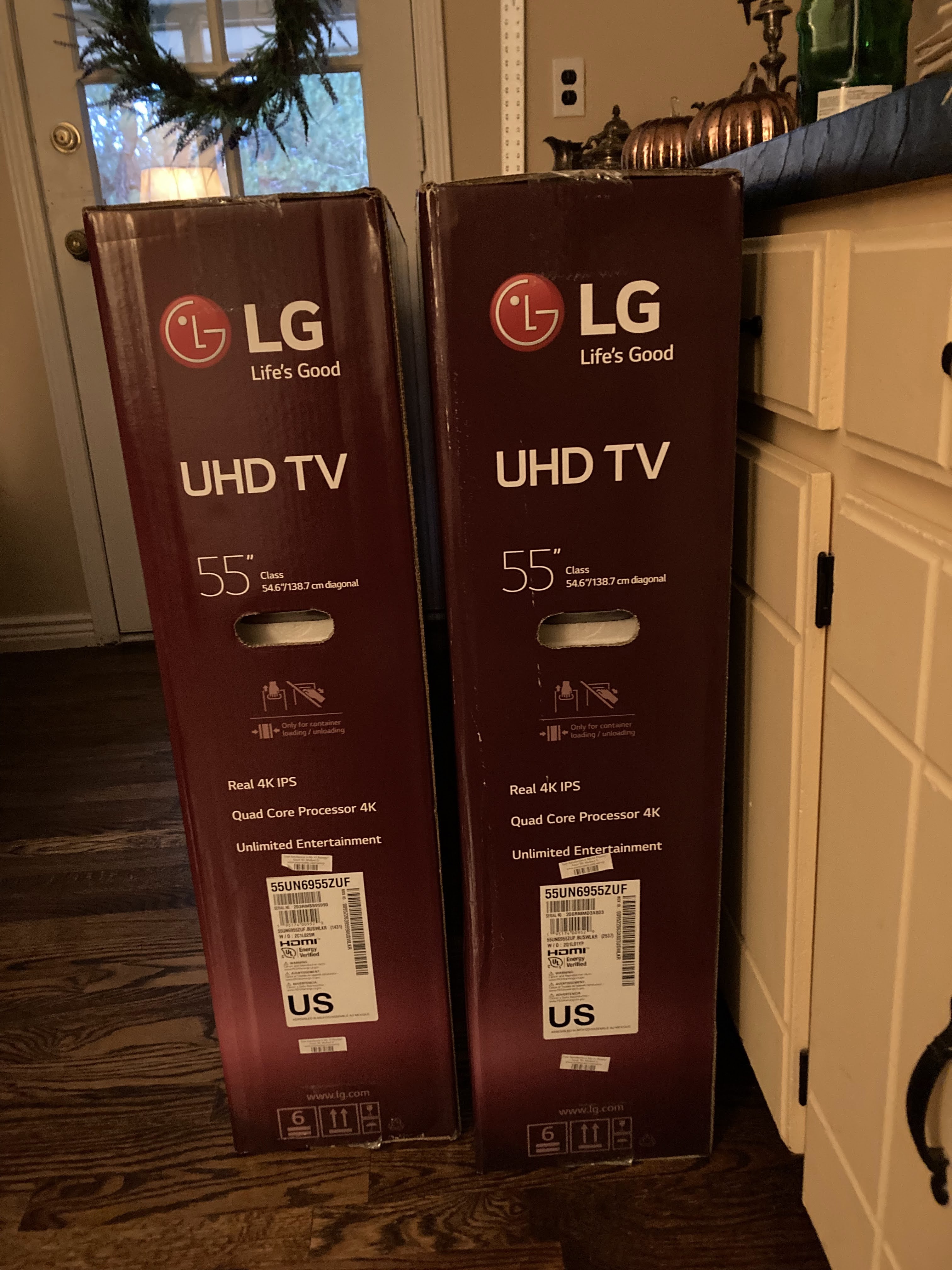 Following our Mexican dinner, we walked over to the technology store that is in the same shopping center. We have known that we wanted to buy a new television. The one that we currently watch is probably eight or nine years old — ancient by today’s technology standards. We’re able to stream, but not easily. We tried Fire Stick. It worked for a while, but then gave up. We had decided to move into our new apartment with a brand new 55-inch television set. We walked back to the TV area, and Bill immediately spotted a 55-inch LG television with smart technology and 4K (whatever that is) for a mere $319. Smokin’ deal in anyone’s book. I readily agreed to buy one for our new living room. But he began lobbying me to buy a second for our new bedroom. I was reluctant for a couple of reasons. 1) Our current bedroom television works fine; and 2) I was concerned that the screen size might be too large for a bedroom. My words were ignored. Two is always better than one in Bill’s book…..