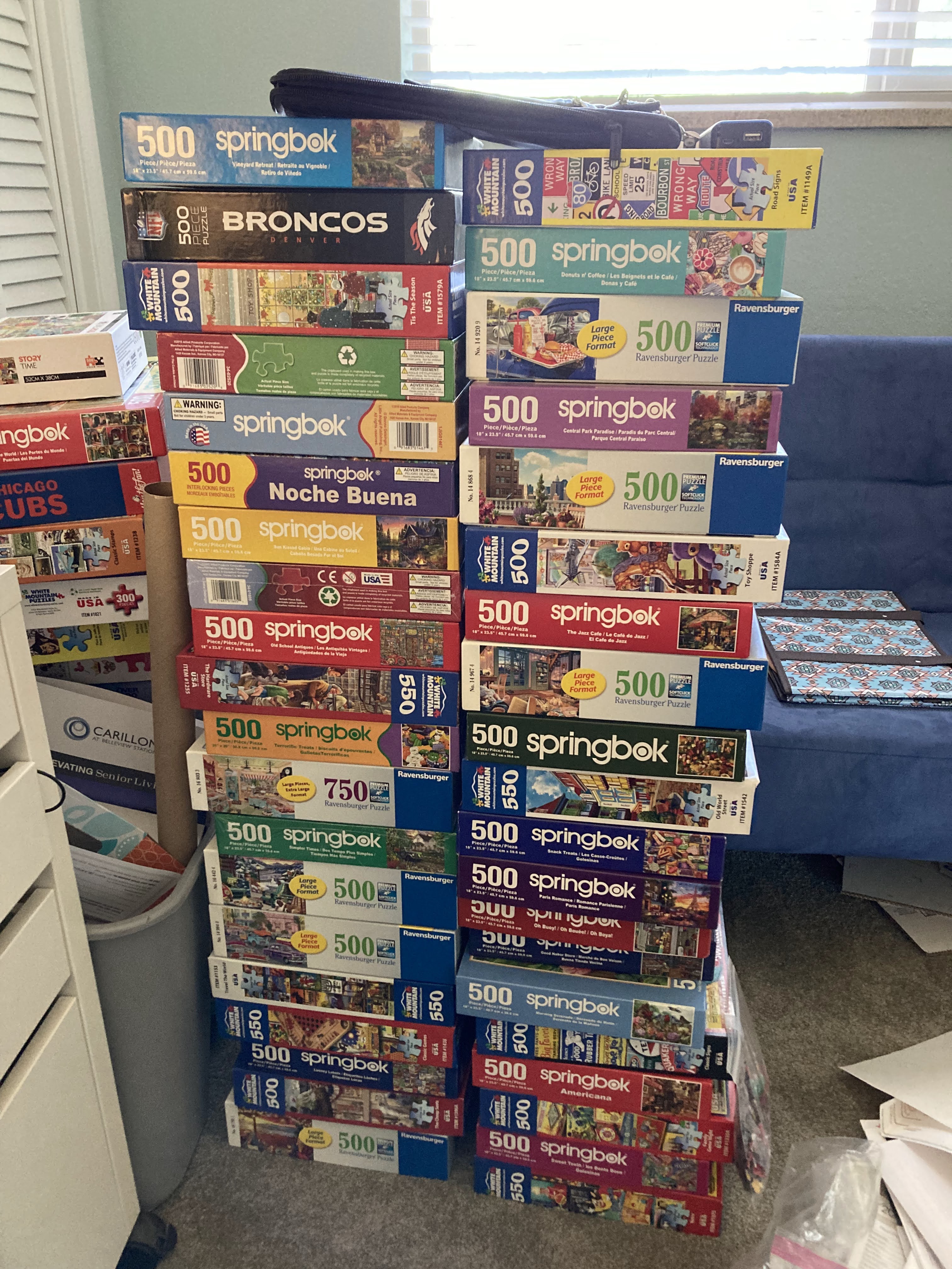 The answer is that I am fully aware that thousands of people move every year in the United States alone. I don’t care about them. That sounds mean, I know. I wish them all well, and hope their move brings them much happiness. But the reality is that my entire life these days has something to do with our move. I am either cleaning out a cupboard or closet, making hard decisions like how many ice cream makers do I need to take to a place at which I will be offered dessert any time I’m interested, or trying to come to grip with getting rid of some of my puzzles…..