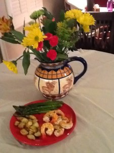He says often what he chooses to grill is a pork chop. I haven’t confirmed this with him, but my guess is that pork chops are cheap and it’s easy to buy one chop and cook it for oneself. He might marinate it. He might simply grill it with salt and pepper or Monterey seasoning. He often tops his meat with bleu cheese. He almost always serves it with grilled vegetables on the side. Sometimes he cooks a potato in his toaster oven. I LOVE the fact that he cooks for himself.