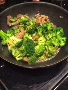 Heat oil in a wok or skillet, and then add beef. Stir-fry for 5-7 minutes, until brown. Remove beef and set aside. Add garlic and ginger to pan and cook for 2-3 min. Add green onion, broccoli, sesame oil, and soy sauce. Cook 6-8 min. until broccoli softens and is bright green. (You can add a little water if necessary) Add meat back to the wok and cook until meat is again heated through.
