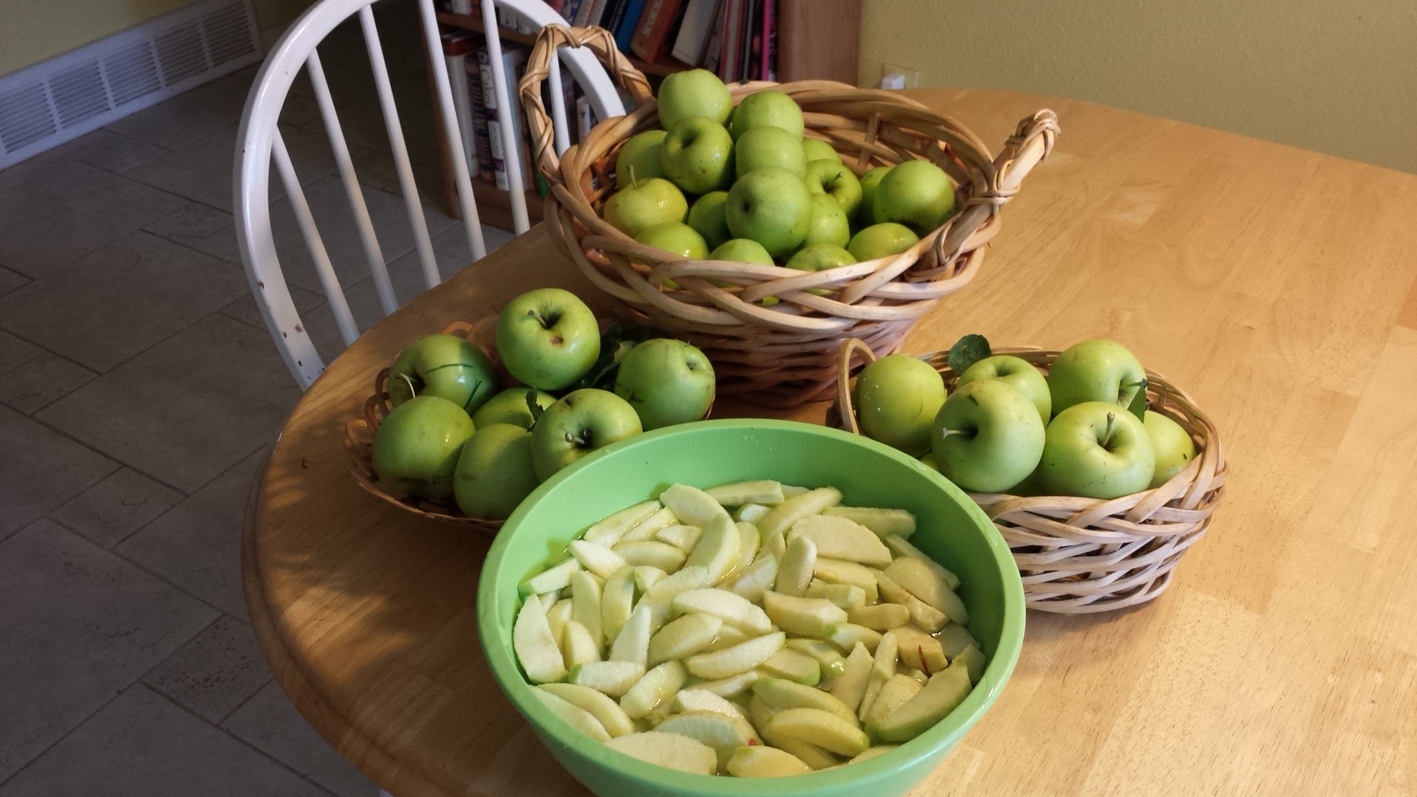 Nana’s Notes: Her recipe had a glaze; I chose to sprinkle mine liberally with sugar after brushing on the cream. Also, since I was facing the above-mentioned crumbly mess, I formed my disk right on the baking sheet, and that seemed to work fine. Finally, I didn’t use fresh peaches; instead, I used canned. That made the dough a bit wetter and the resulting scones a bit more moist. I’m not sure if that’s a good thing or a bad thing.
