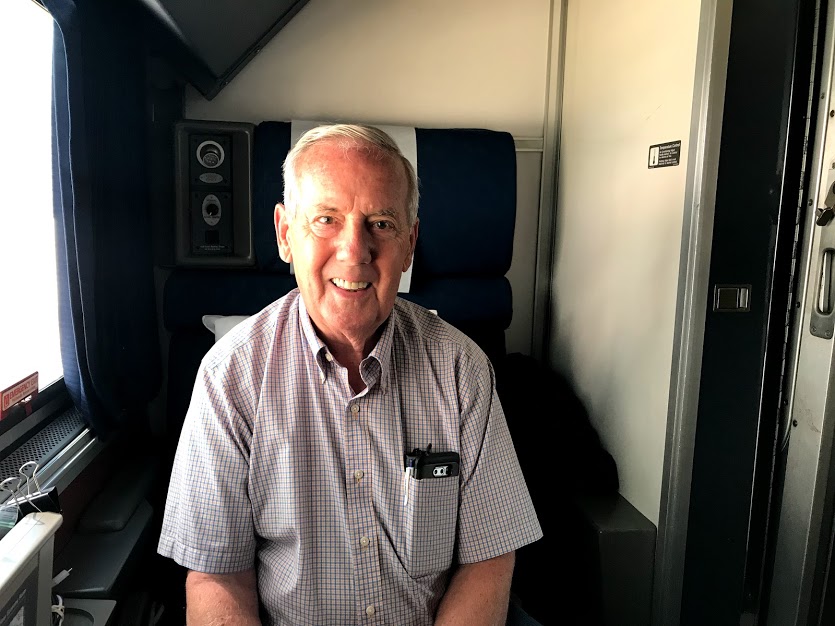 Our steward introduced himself as Alfredo (as in the fettucine) and showed us to our sleeping car. It was small – large enough for two chairs facing one another with a small pull-down table in between. That was it. Even our luggage had to be placed elsewhere. Nevertheless, I loved it immediately. It was private and we could move around enough to avoid getting blood clots. Best of all, we were steps away from both the bathroom and the dining car. I’m pretty sure the difference between riding a train as a simple passenger and riding a train as a sleeping car passenger is as different as day and night. Despite the smallness of the berth, having a steward makes all the difference in the world……