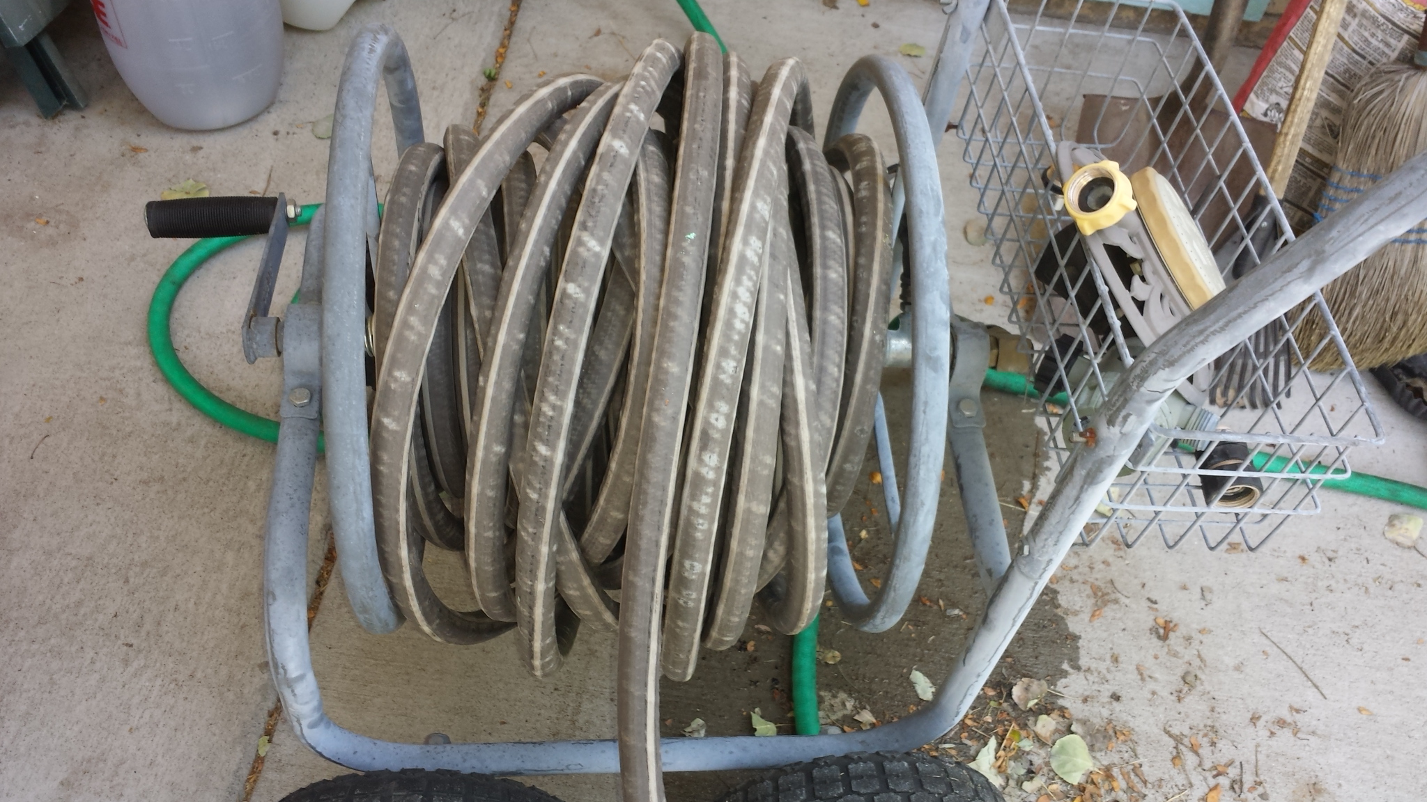 In two simple photos, I can show you one of the immense differences between neat and tidy Bill and his wife, Pigpen Kris. I will simply show you how we roll up the hose in the backyard. Here’s the hose when Bill rolls it up….