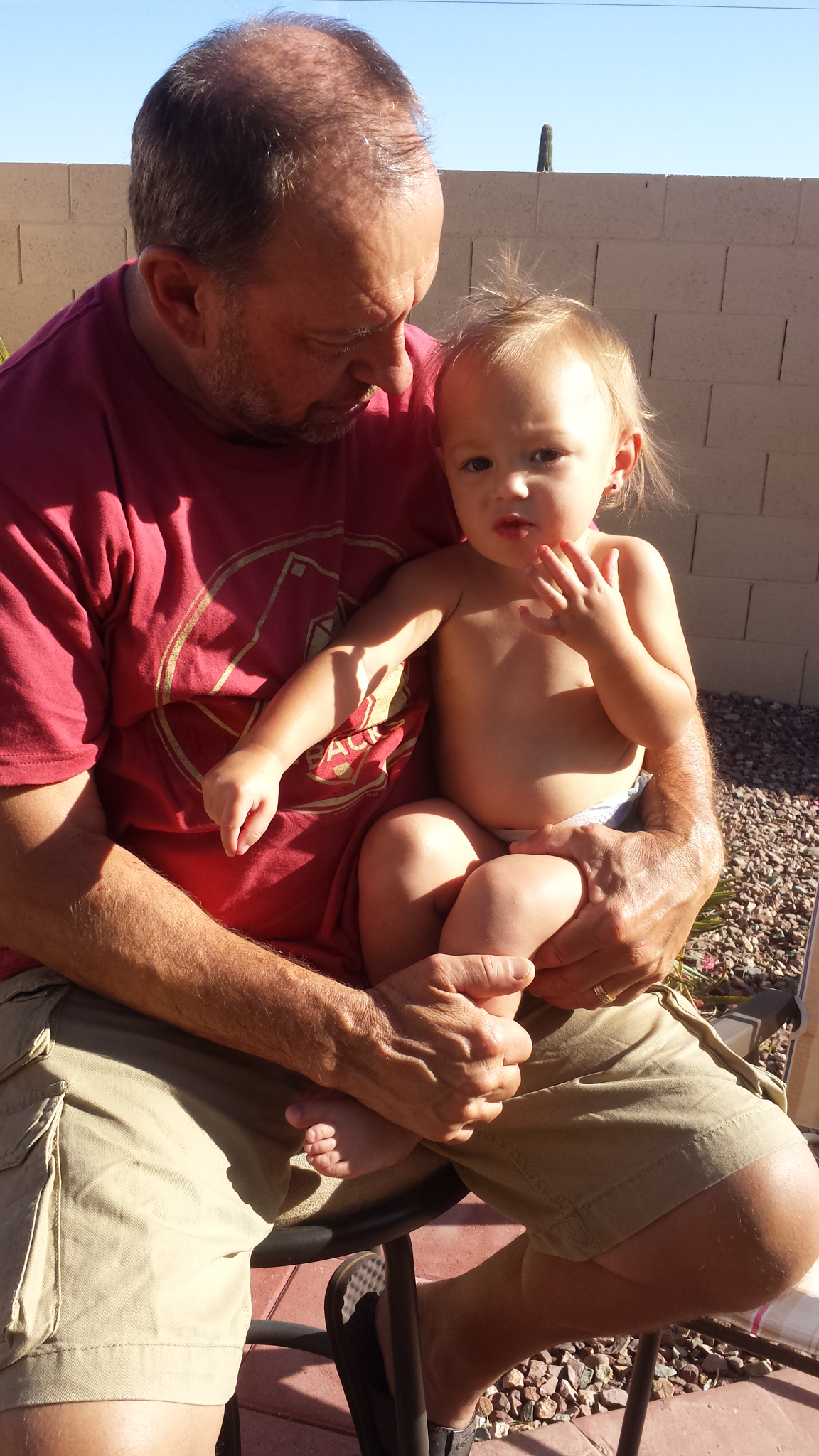 My brother is grown up now, shown here with his youngest grandbaby Kelsie. He would undoubtedly take a swing today.