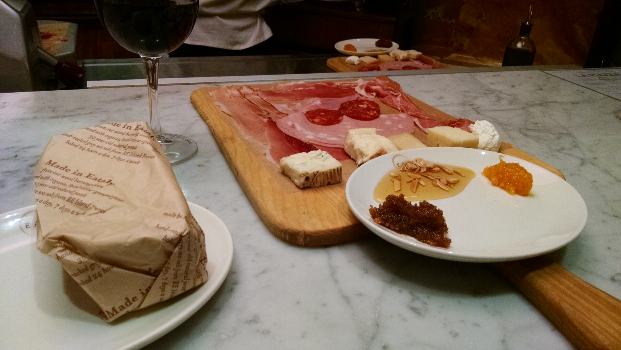 Eataly, one of my favorite places in Manhattan. Just walking in the door makes me smile, as you are immediately hit with the sight of beautiful produce and the smell of every kind of good food. I chose to have a charcuterie and cheese plate and, of course, a glass of wine. After checking out the display cases of fresh pasta, meats, and seafood, I stopped for a shot of espresso on my way out the door.