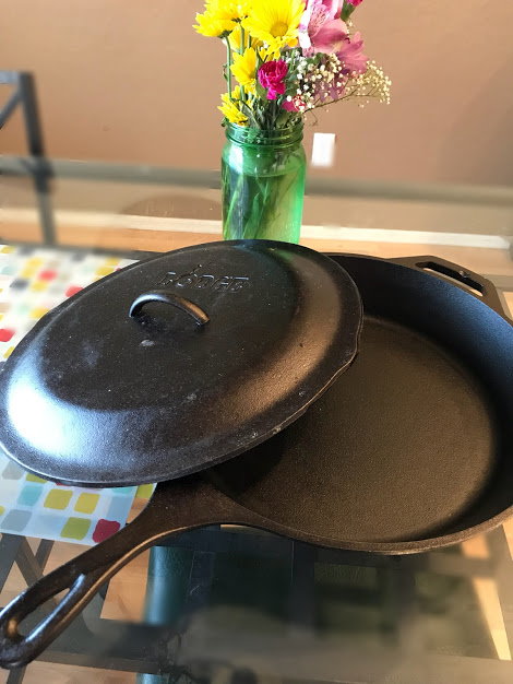 At first, I got by with my small 10-inch Lodge pan (always Lodge; I’m a fan). But the first time I invited our AZ family for fried chicken, it became abundantly clear that I needed a larger pan. I have a 12-inch Lodge cast iron frying pan in Denver and it didn’t take long before I had one here as well…..