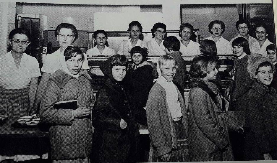 Here is a photo courtesy of a fellow grade school classmate who somehow had access to this permanent reminder of our youth. I am pretty sure I am the little girl with my back to the camera in the middle row, third from the right, uncharacteristically wearing my glasses. The top row features the women who served us every day at cafeteria. While they look wholly unpleasant (except for the woman on the far right who didn’t get the memo that she shouldn’t smile), I recall them actually being quite pleasant. Ah, sweet youth….