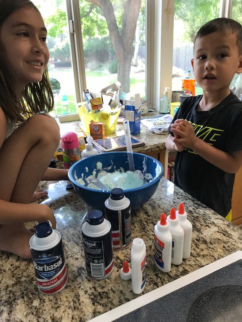 When Kaiya is anywhere around, there is likely at least TALK about making slime. And, much to her delight, her cousin Grace (who was one of the visiting dignitaries from AZ this past week) is a slime connoisseur. So, not surprisingly, this happened….