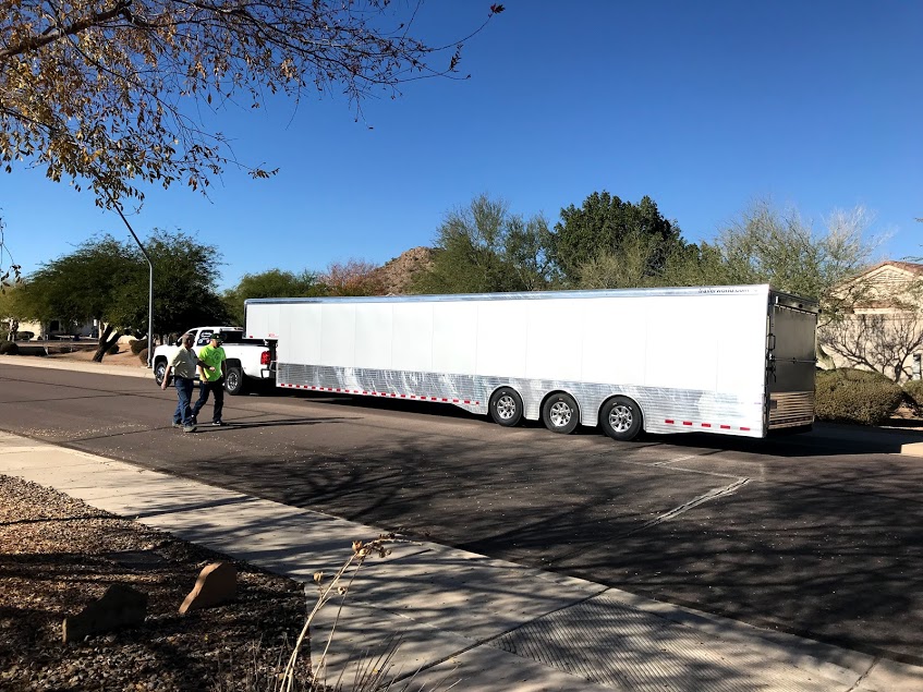 This winter – for the first time ever – Bill decided to bring his sports car to Arizona. Ship it, actually. It came inside a huge trailer, the last of all of the sports cars to be delivered……
