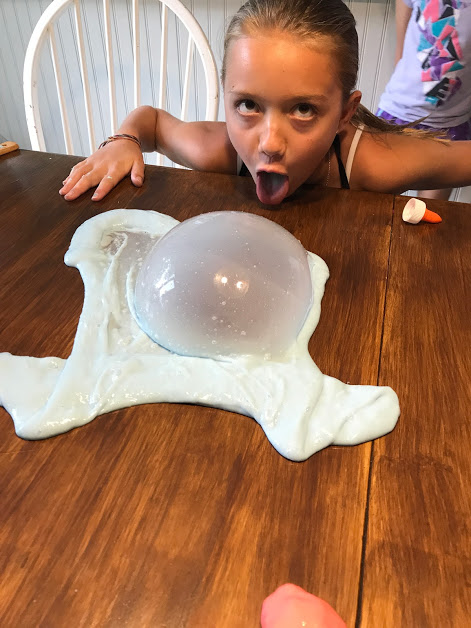 Having said all of this, I will tell you that I have never understood why parents are so fed up with slime. It seems harmless, if also useless. Kaiya can make it in her sleep. Both Mylee and Cole feign interest, but they can’t even fake interest after about 10 minutes. Kaiya, on the other hand, will spend hours making it, and then stretching it and poking it pulling it and blowing bubbles in it and cracking and popping it. But what’s the harm in that?…..