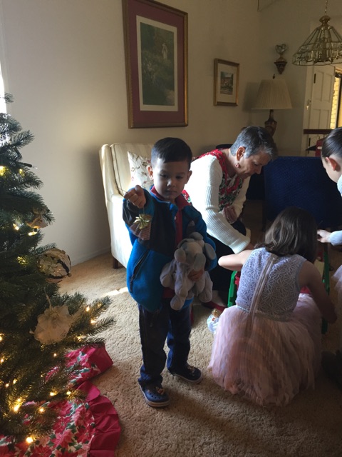 Before the rest of the guests arrived Kris and the grands decorated the angel tree. There was much discussion about each ornament.