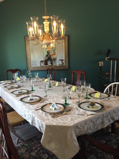 Kris and I had debated which dishes to use since her good china has to be hand washed and we had a lot of people coming. The Christmas ware was on the docket for a few days but then I got a text from Kris earlier in the week including a picture of her good china saying, “Bad news, Sis. I made a decision and I’m sticking to it. I never get to use my pretty dishes.”