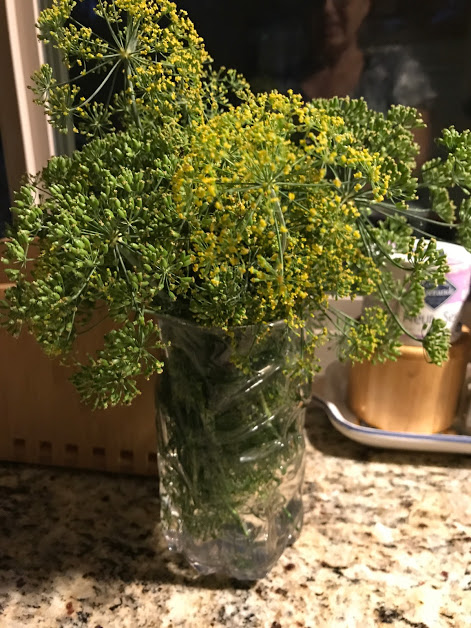 It started on Saturday, when I met my sister Jen in Boulder for lunch and some shopping. She brought me the most beautiful bouquet (because, yes, that’s exactly what it was) of dill from her garden. While my dill this year kind of petered out, her’s blossomed into more than she could possibly use for her salmon filet that she has maybe once a month…..