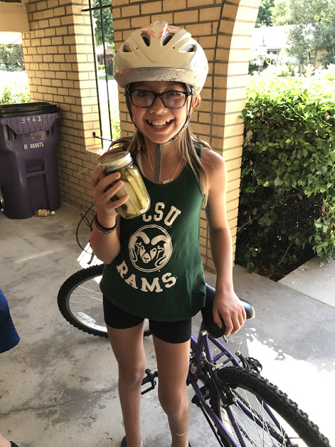 I’m sorry to tell you that a mere 15 seconds after I took this photo, disaster struck. She didn’t make it to the end of our sidewalk before she dropped the jar and there were pickles and pickle juice everywhere. She had the saddest look on her face.