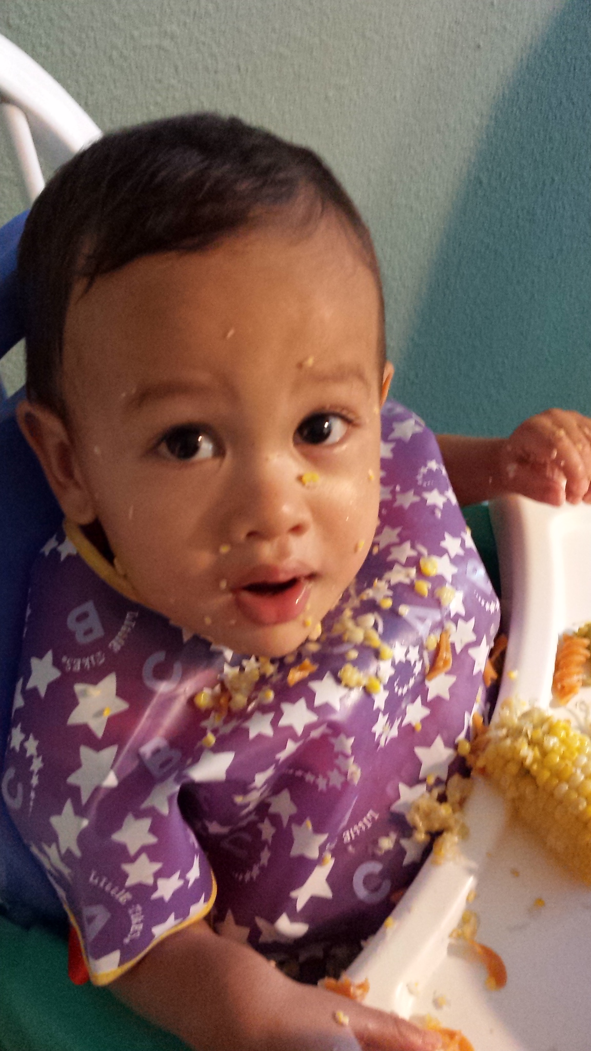 Finally, Cole Jonathon was over for dinner the other night and enjoyed an ear of sweet corn (real sweet corn, not potato chips). And when I say enjoyed, I mean ENJOYED.